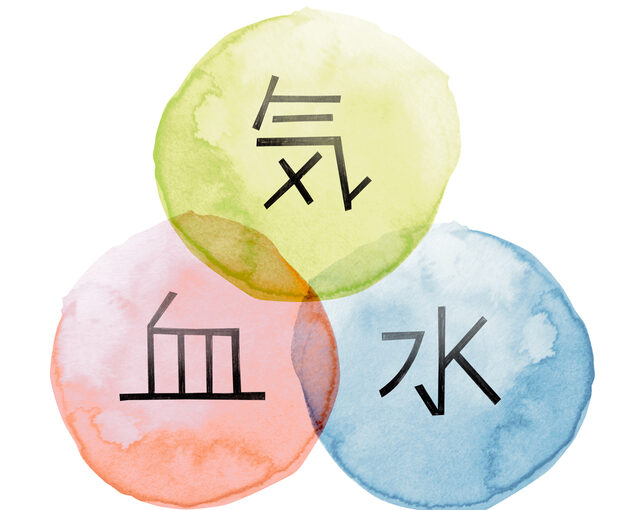 また、東洋医学では人間の体を構成している基本的な要素として気・血・水(津液)という三つの要素があると考えます。